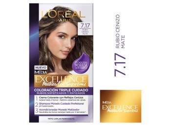 Kit Tintura Excellence Matizador Supreme Tono 7.17 Rubio Claro Cenizo
